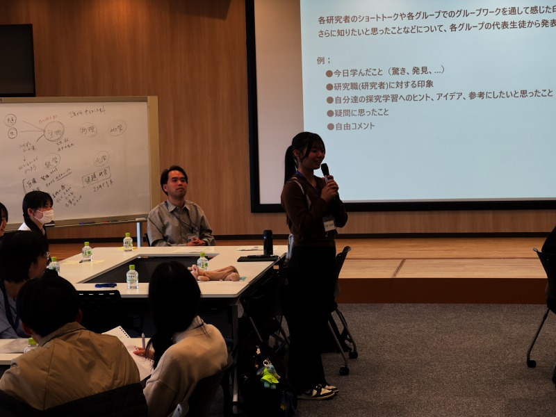 また、今年度から新たに研究者とのワーキングショップを始めており、生徒が日頃から取り組んでいる白亜研究のテーマを現役研究者に説明して質疑応答を含むディスカッションを通じて、研究の着眼点や発想、データの見方などを学ぶ非常によい機会となりした。予定していた時間をオーバーするなど、生徒からも積極的な質問がでており、最先端の科学技術に触れ、研究者の仕事ぶりの一端を知る大変有意義な研修となりました。