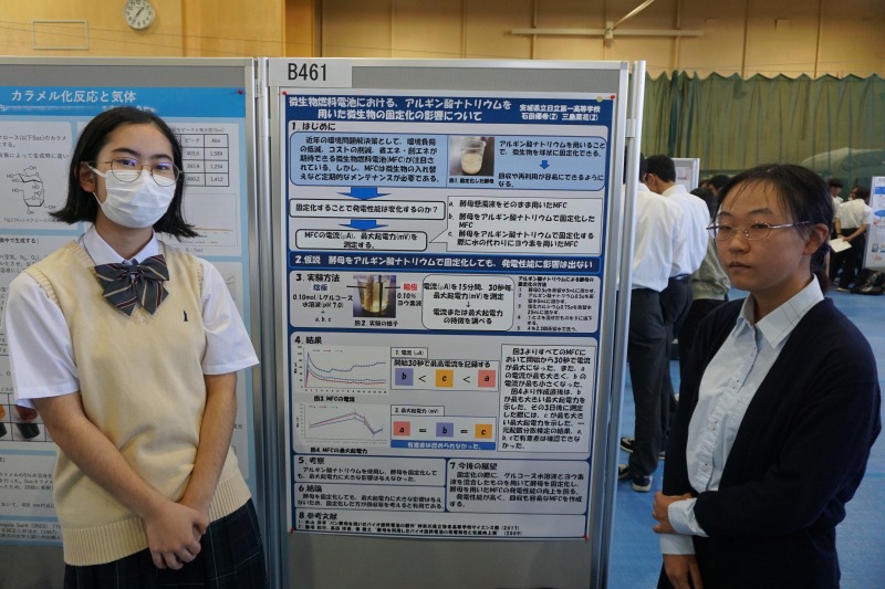 化学部門では,2年の三森優希さんと村上翔渉さんが参加し,三森さんのグループは化学部門の優秀賞を受賞しました。