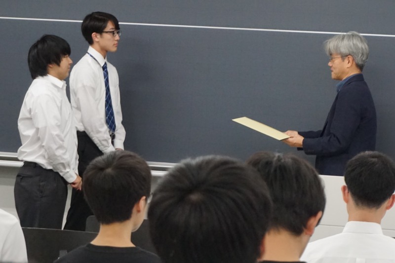 ・受賞者生徒氏名クラス:萬代充裕(3-B) 山本太一(1-3)
