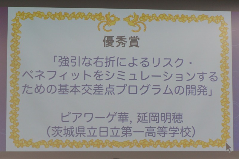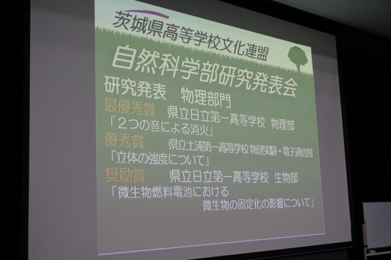 SSH運営指導委員からは全体的に高い評価をいただきましたが,特に物理部の発表が「説明が堂々としている」「スライドの作りが優れている」「非常に論理性が高い」との高評価をいただきました。なお,物理部は佐賀県で行われる全国高等学校総合文化祭自然科学部物理分野の茨城県代表に選出されています。