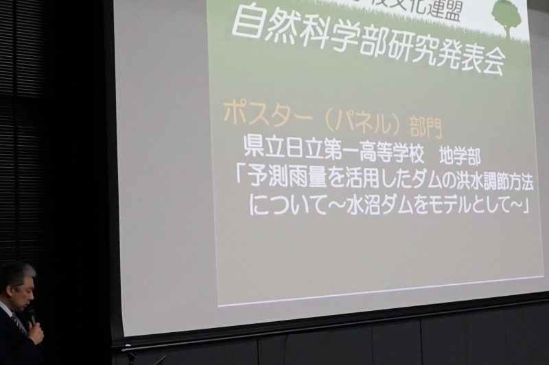 午前は,日立市民会館で,本校の研究活動の中で,優秀な研究を集めて10分間の口頭発表と3分程度の質疑応答を行いました。