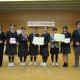 茨城県庁での表彰式。中学生や顧問とともに喜びの記念撮影。