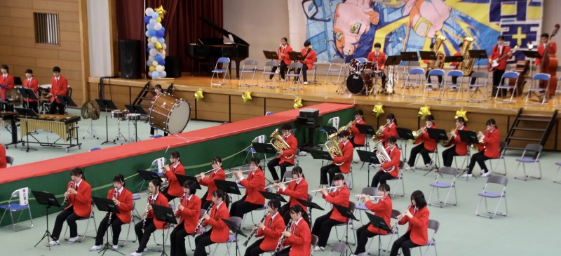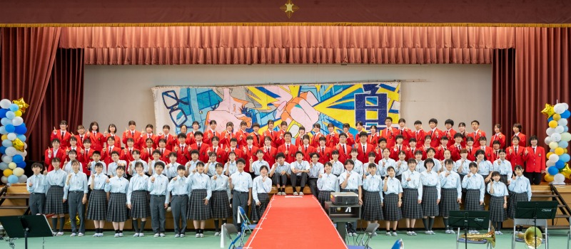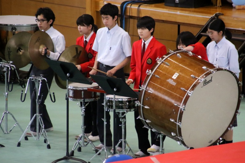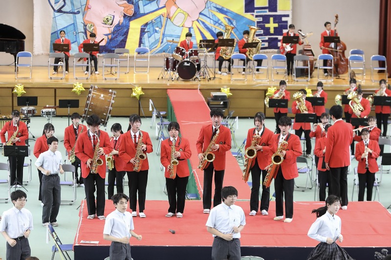 吹奏楽部の迫力ある演奏と共に、全員が一体となって飛んで跳ねて歌って会場は熱気に包まれ、楽しい時間となりました。
