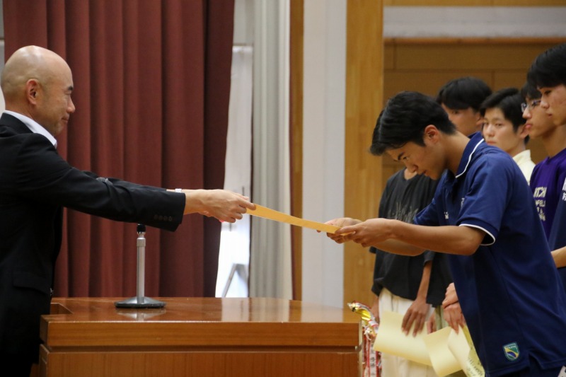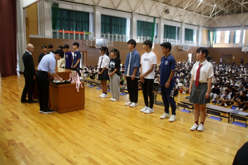 その後、本校体育館アリーナにて表彰式・壮行会・夏季休業前集会が行われました。
