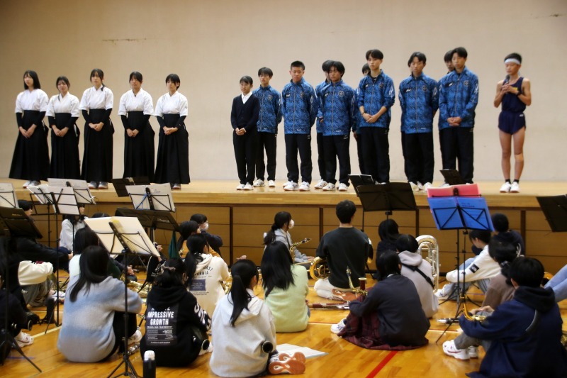 また、運動部活動の在校生による校歌披露も行われました。