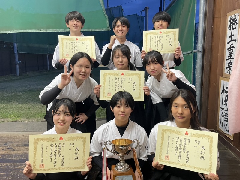 大会で自身の最善の射ができるよう、部員一同志高く練習に励んでいます。