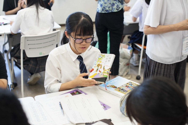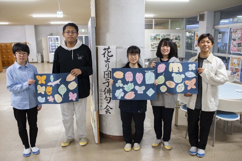 句を選出する際には、他校の生徒と交流し、様々な視点でお互いに批評しあっていました。