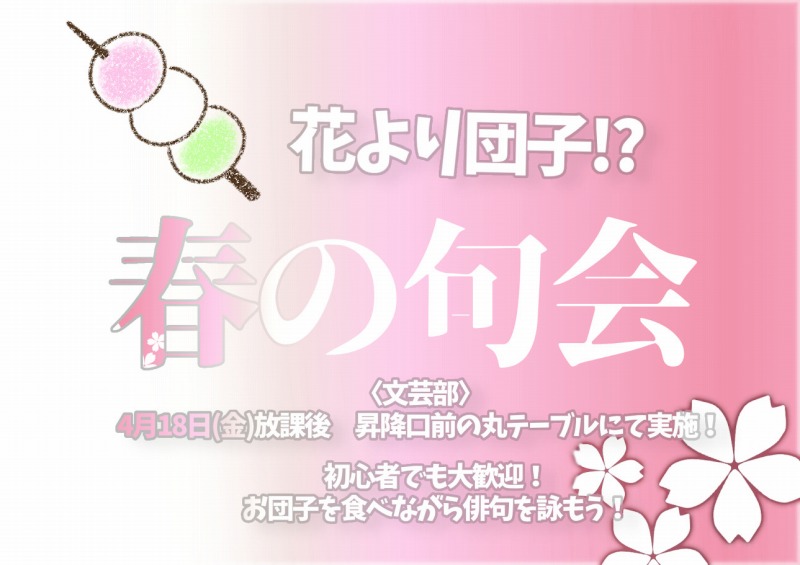 新入生勧誘を兼ねて、昇降口で春の句会を行いました。