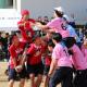 まずは1・2年生と中学生によるチアリーディング。 3年生の背中を力強く後押しする、若さあふれるエールが贈られました。